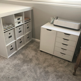 Create a system to best use your available storage and workspace. You don’t have to have an entire room, just be intentional with the space you do have.